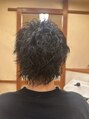 髪質に合わせて薬剤を選定し、程よくラフなツイストカールをオン。柔らかい動きとボリューム感で、直毛でも雰囲気ある仕上がりに。刈り上げとのバランスで清潔感もキープしつつ、パーマ初心者にもおすすめなナチュラルスタイルです。