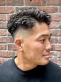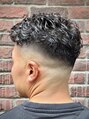 サイドは0mmからグラデーションで仕上げたスキンフェード。首元までタイトに刈り込むことで、清潔感とシャープな印象を両立。トップは短めながらも、程よいパーマで動きをつけて立体感を演出。