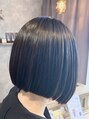 上品/大人/アッシュグレー/ブルーブラック/切りっぱなしボブ/ぱつっとスタイル/ボブ/ショート/韓国風/インナーカラー/ブルーブラック/ブルーイメチェン/似合わせカット/[我孫子駅][我孫子駅/ハイライト/インナーカラー/ケアブリーチ/ととのうヘッドスパ