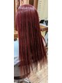 全頭ブリーチしてピンク系のカラーにしました。夏の紫外線でちょっぴり傷んだ髪も、深みのある暖色系のカラーで一気にツヤツヤに。光に当たると、ほんのりチェリーっぽい色味にも見えて、とっても可愛いカラーです。