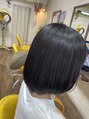 すかない甘めのボブがいいと、3かけ3ヶ月前縮毛矯正かけたので根本縮毛で、頭よりツヤ与えたいので毛先は温熱トリートメントでさせていただきました。
