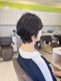 ショートレイヤー。最近は暑い日が多いので、ボブではなくショートにしました。全体をレイヤーで切ることでより軽い質感にしています。