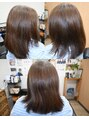 ステップボーンカットとリタッチしました。毛量が多くオイルを使って納めているという方を首回りすっきりグラボブにしました。もさっとしやすい髪ですが、ステップボーンカットで空気感のある乾かしやすいボブスタイルです。