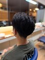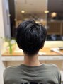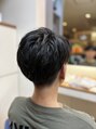サイドとバックのまわりはスッキリと刈り上げで、トップの方は少し短めにして軽やかさを表現してます。スッキリしたいメンズにおすすめです!
