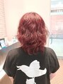 ルビーピンク/レッド系カラー/暖色系カラー/ミディアムパーマ/ホットペッパービューティー