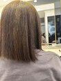 しっかり白髪染めから明るめヘアマニキュアに徐々に変えている段階 クセもあるので髪質改善トリートメント