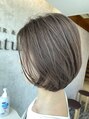 あごラインボブ。レイヤーを入れてゆるやかな動きも出しやすく。さらに明るめのアッシュブラウンで夏っぽさも。