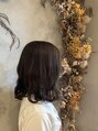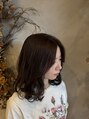 前髪の流れとサイドのウェーブを繋げた韓国風のゆる巻きスタイル。カラーはオリーブで赤みを消した柔らかいお色に。トリートメントで更にダメージもしっかりケア◎