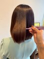 髪は顔まわり、トップ、襟足などで髪質、ダメージレベルが違います。それらを適切に見極めて薬剤選定することが縮毛矯正をうまくかけるポイント。じっくりと優しい薬剤をしっかりと効かせてダメージレスながら自然なストレートヘアに導きます。【恵比寿】