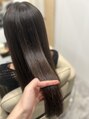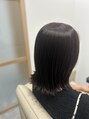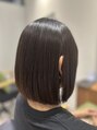 縮毛矯正をして、扱いやすくまとまりやすくしたのち、前下がりボブスタイルで切りました。バームをつけて仕上げました。