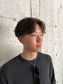 前髪上げることもでき、下ろしたスタイリングも出来るシャドウパーマ。乾かすと自然な癖になり、濡らしてワックスを揉み込むことでパーマスタイルに大変身。