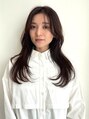 顔まわりに丸みのあるカットをすることによって全体的に長く見えやすいところをカバーできます。髪色が全体的に暗めなので顔まわりの毛は重くなりすぎないようにすることがポイントです。