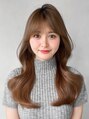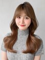 美髪斜めバングモテ髪ハイライトカラーアプリコットオレンジ/ホットペッパービューティー