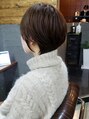 耳周りの透け感、クビレのあるバックフォルムが綺麗な大人のショートスタイル。ナチュラルな光沢と、柔らかい色味のカラーが上品な大人のカラーリング。