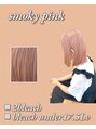 スモーキーペールピンクボブ顔まわりレイヤーブリーチハイトーン