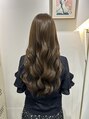 ブリーチなしのミルクティベージュ。ロングヘアでも重たくなく、艶と透け感が出て柔らかく見えるのでおすすめです!