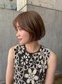 顎ラインでカットしたスッキリミニボブです!ふんわりアイロンでセットしています!カラーは一回ブリーチしたオリーブベージュです!透明感のある可愛いカラーです!