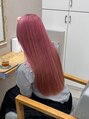 ブリーチ一回履歴ありの状態から、2回ブリーチしてオンカラー。ブルベさんなので、青みよりのピンクにしてます。