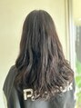中間から毛先にゆるくパーマをかけることで、暗めのトーンでもふんわり優しい印象に仕上げました。