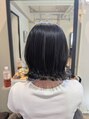 内側には ネイビーのインナーカラーをしのばせて、動いたときやふとした瞬間に見える深みブルーが大人可愛いヘアに!シンプルだけど、こだわりが詰まったスタイル。色落ちも楽しめるネイビーで、透明感とツヤ感どちらも叶えました◎