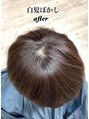 白髪抑制カラーでの根本染めになります。活性酸素や残留薬剤をしっかり落として仕上げていきます。