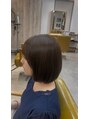 顎ラインの切りっぱなしボブに髪の毛を柔らかく見せるオリーブブラウンで軽さを実現◎