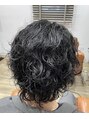 波とスパイラルのミックスパーママッシュウルフベースにパーマをかけ、ウエット系のスタイリング剤でセクシーさアップ