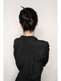 モードでモダンなシルエットのお洋服に合わせて、ヘアセットもタイトな仕上がりに。最近の韓国風カチモリとも違う、個性派スタイル。お呼ばれヘアやイベントにも相性バッチリです。