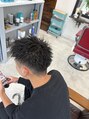 元々直毛で動きづらい髪ですがツイストで散らしてグリースをつけるだけでここまで立体感がでます!さっぱりショートオススメです!/ツイストパーマ/アップバング/メンズ/メンズショート/メンズカット/新潟/