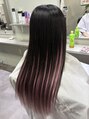 ピンクのみでの取り付けご希望でしたが、地毛の表面が短く、かなりエクステ感が出てしまうため、表面のみ地毛に近い色味を取り付けさせていただき広めのインナースタイルに仕上げました!ピンクはハイトーンのエクステを染めて作ったものです!