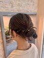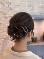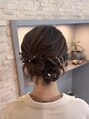 ツイスト編み込みをサイドに施し、高めの位置でまとめたカールポニーテール。ベロアの黒リボンをアクセントに加えることで、甘すぎず上品な印象に仕上げました♪