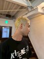 - 堀江/フェザーショート 刈り上げセンターパート ホワイトブロンド エンドカラー 波打ちパーマ サーフカール