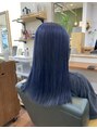 今回はダブルカラーでブルーブラックにカットは顔周りを姫カットのような長さに設定し、それにシャギー感を加えて「周りと差がつく」ようなスタイルに仕上げました!