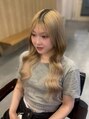 透明感のあるブロンドベースに、毛先へかけてやわらかなグラデーションが映えるロングスタイル。大きめの波ウェーブで動きをつけ、海外風の抜け感とツヤ感を両立しました。カラーやスタイリングで雰囲気を変えやすく、イベントやお出かけにもぴったり♪