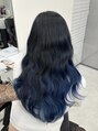 ミディアムレイヤーカットケアブリーチ顔周りブルーブラック