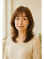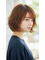 丸みのあるフォルムで女性らしい柔らかさを表現し、シフォンベージュで透明感と上品さをプラスしました。前髪を薄く流すことで抜け感が生まれ、大人女性にぴったりの好印象スタイルです。オンもオフも似合う万能ボブ。
