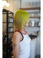 黄緑のルーツカラーとベージュの毛先でデザインカラーをしております!ナチュラルかつ奇抜なハイセンスヘアです♪