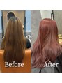 オレンジ味のある髪を、ツヤ感たっぷりのチェリーピンクへ♪くすみを抑えて、肌色がパッと明るく見えるカラーにチェンジしました。(wカラー必須)