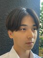 耳周りと襟足はスッキリさせた、2ブロックのハンサムセンタパートスタイル。センターパートにしやすいように前髪の方を少し長く残し前下がり気味にカット。後頭部も綺麗に丸みがでるよう長さを調整して骨格補正を。