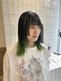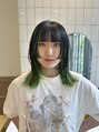 インナーにネオンなグリーンを♪ザクザク入ったレイヤーと、顔まわりのぷつっとポイントがお洒落なちょっぴり個性派スタイルです^^