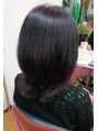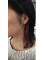 人気のミディアム~セミロングのレイヤースタイル少し重めに、スタイリングし易い様に調整しました。襟足にポイントでブリーチを入れ全体を赤系ピンクのマニキュアでカラー。エイジング毛特有のウネリや縮れもトステアで扱い易くなります。ブリーチ部分別日撮