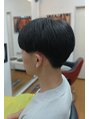 サイドのみディスコネのツーブロック。ネープはナチュラルな刈り上げのマッシュスタイル。手櫛のドライのみの仕上げです。