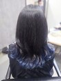 上は地毛のままで下の方をインナーカラーでブルーに。地毛の暗い色にも映えるような青みで。