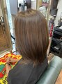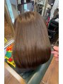 9レベルのグリーン系ブラウン明るめカラーで白髪をぼかしてグリーンで赤みを抑えて透明感ブラウンになりました!アルカリ酸熱トリートメントで栄養成分をしっかり補給してからのメテオカラーで艶マシマシ髪です!