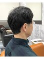 ニュアンスパーマで毛流れをつくり、刈り上げとの境目もなじむように自然な仕上がりに。