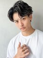 ナチュラルヘアブルーブラックフェザーパーマアップバング