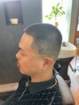 サイドからバックにかけてスキンフェードでシャープに引き締め、トップはタイトに短く整えた男らしいスタイル。清潔感とワイルドさを兼ね備え、髪質やクセを活かした似合わせも可能です。