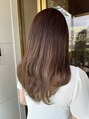 ベースの長さは変えずレイヤーを入れて動きが出るスタイルに!長さは変えたくないけど変化をつけてい方におすすめ。カラーはオリーブを混ぜたベージュ系にして柔らかみがあるからーに!