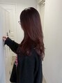 - カット アディクシーカラー オージュアくびれヘアアプリコットオレンジハイライトカラーウルフカット