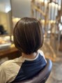 丸みのあるシルエットや柔らかいスタイリングで、大人女性にも似合うショートボブです。カラーはクールブラウンで大人可愛い